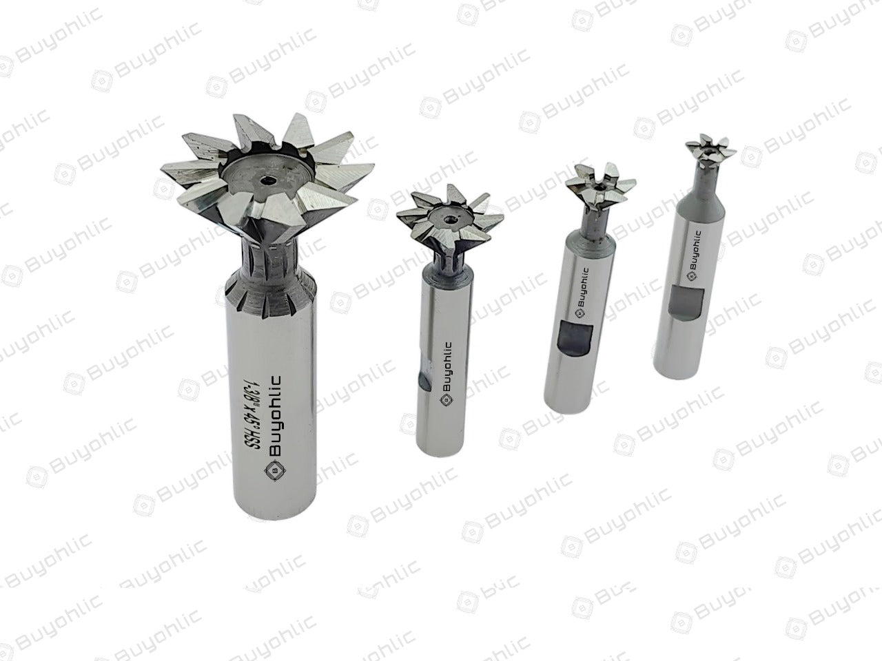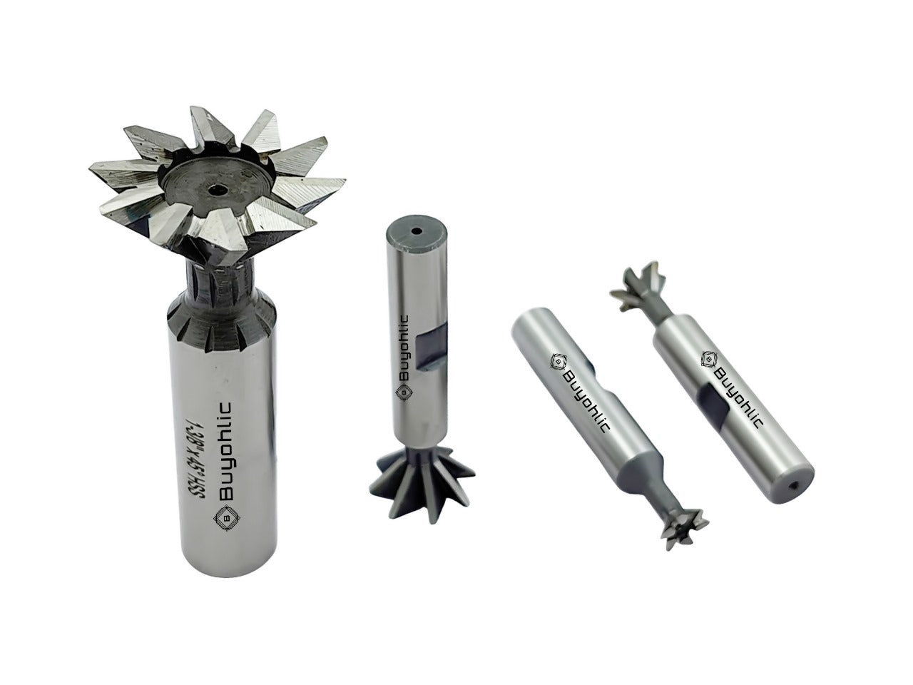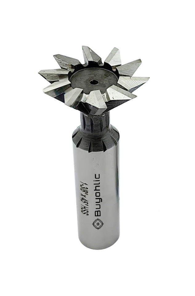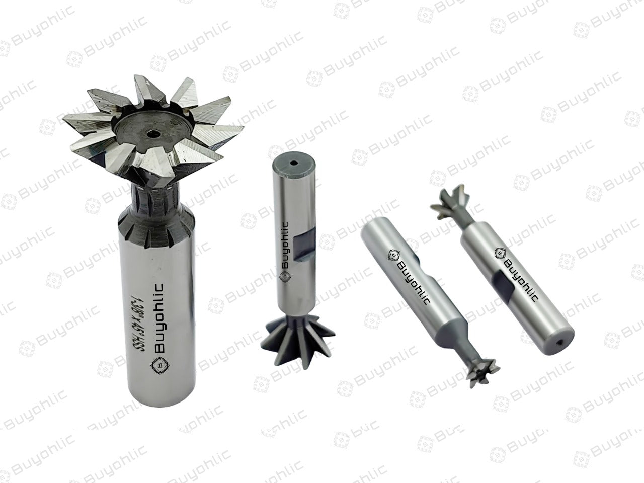 Precision meets versatility with this comprehensive High Speed Steel Dovetail Cutter set. Featuring four essential sizes - 1-3/8", 3/4", 1/2", and 3/8" - these cutting tools are designed for 45° angle cutting applications. Perfect for creating precise dovetail joints and grooves in woodworking and metalworking projects. The high-speed steel construction ensures durability and maintains sharpness through extended use. Each cutter delivers clean, accurate cuts with professional results. The set comes housed in a protective wooden box for organized storage and easy transport. Whether you're a professional craftsman or serious hobbyist, these dovetail cutters provide the accuracy and reliability needed for quality joinery work. The variety of sizes allows for flexibility in joint dimensions, making this set suitable for a wide range of applications from furniture making to industrial manufacturing.