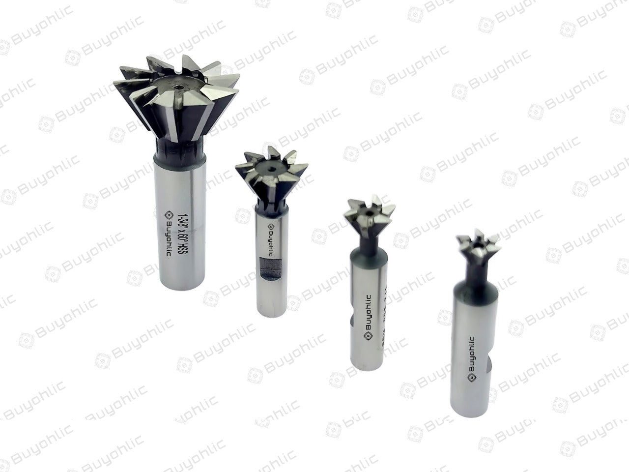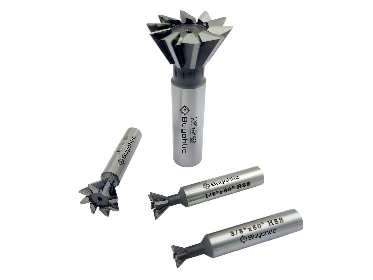 Precision meets versatility with this comprehensive High Speed Steel Dovetail Cutter set. Featuring four essential sizes - 1-3/8", 3/4", 1/2", and 3/8" - these cutting tools are designed for 60° angle cutting applications. Perfect for creating precise dovetail joints and grooves in woodworking and metalworking projects. The high-speed steel construction ensures durability and maintains sharpness through extended use. Each cutter delivers clean, accurate cuts with professional results. The set comes housed in a protective wooden box for organized storage and easy transport. Whether you're a professional craftsman or serious hobbyist, these dovetail cutters provide the accuracy and reliability needed for quality joinery work. The variety of sizes allows for flexibility in joint dimensions, making this set suitable for a wide range of applications from furniture making to industrial manufacturing.
