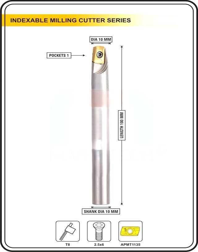 This is a precision-engineered Shoulder and Face Milling Cutter used in both CNC and Manual Milling Machines. Compatible with ISO APMT1135 carbide inserts, it ensures cost-effective and efficient machining compared to traditional HSS tools. The cutter body is hardened to 45–50 HRC, offering excellent wear resistance and long tool life.