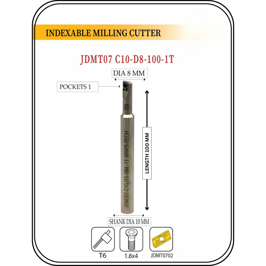 This is a precision-engineered Shoulder and Face Milling Cutter used in both CNC and Manual Milling Machines. Compatible with ISO JDMT0702 carbide inserts, it ensures cost-effective and efficient machining compared to traditional HSS tools. The cutter body is hardened to 45–50 HRC, offering excellent wear resistance and long tool life.