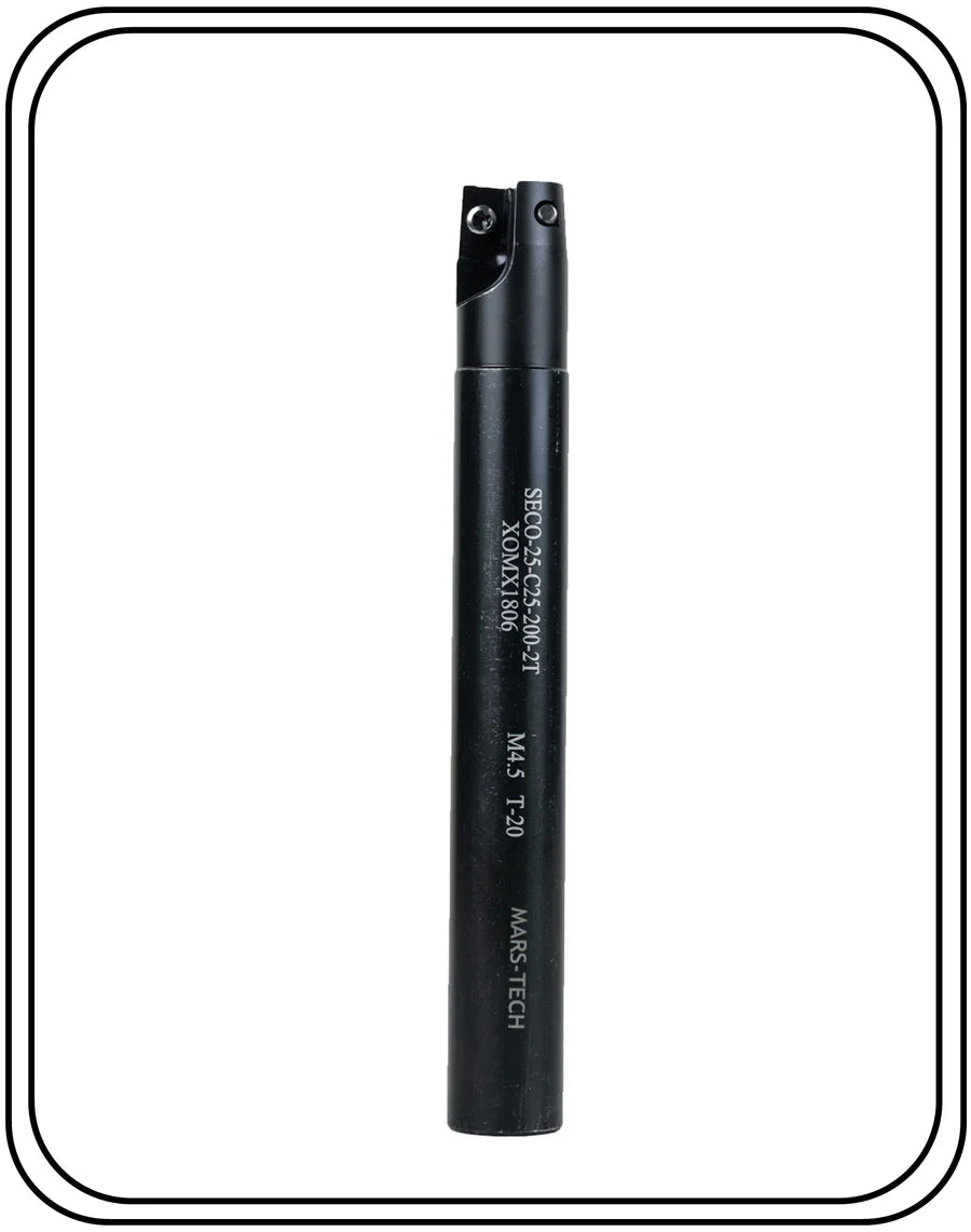 The insert pockets are tightly machined to eliminate any gap between the insert and seat, ensuring smooth cutting. Run-out tolerance is maintained through center-to-center grinding. The tool also includes center holes on both ends for precise setup.