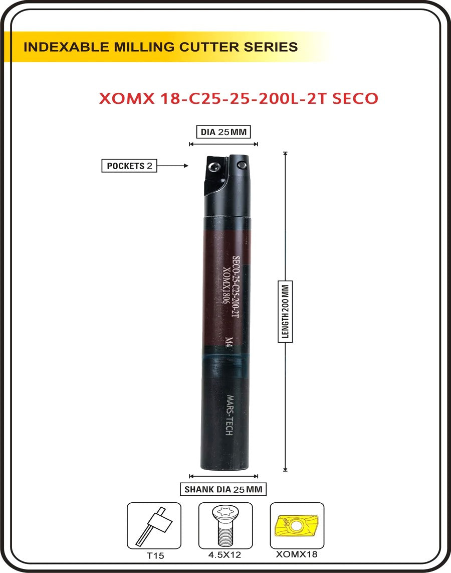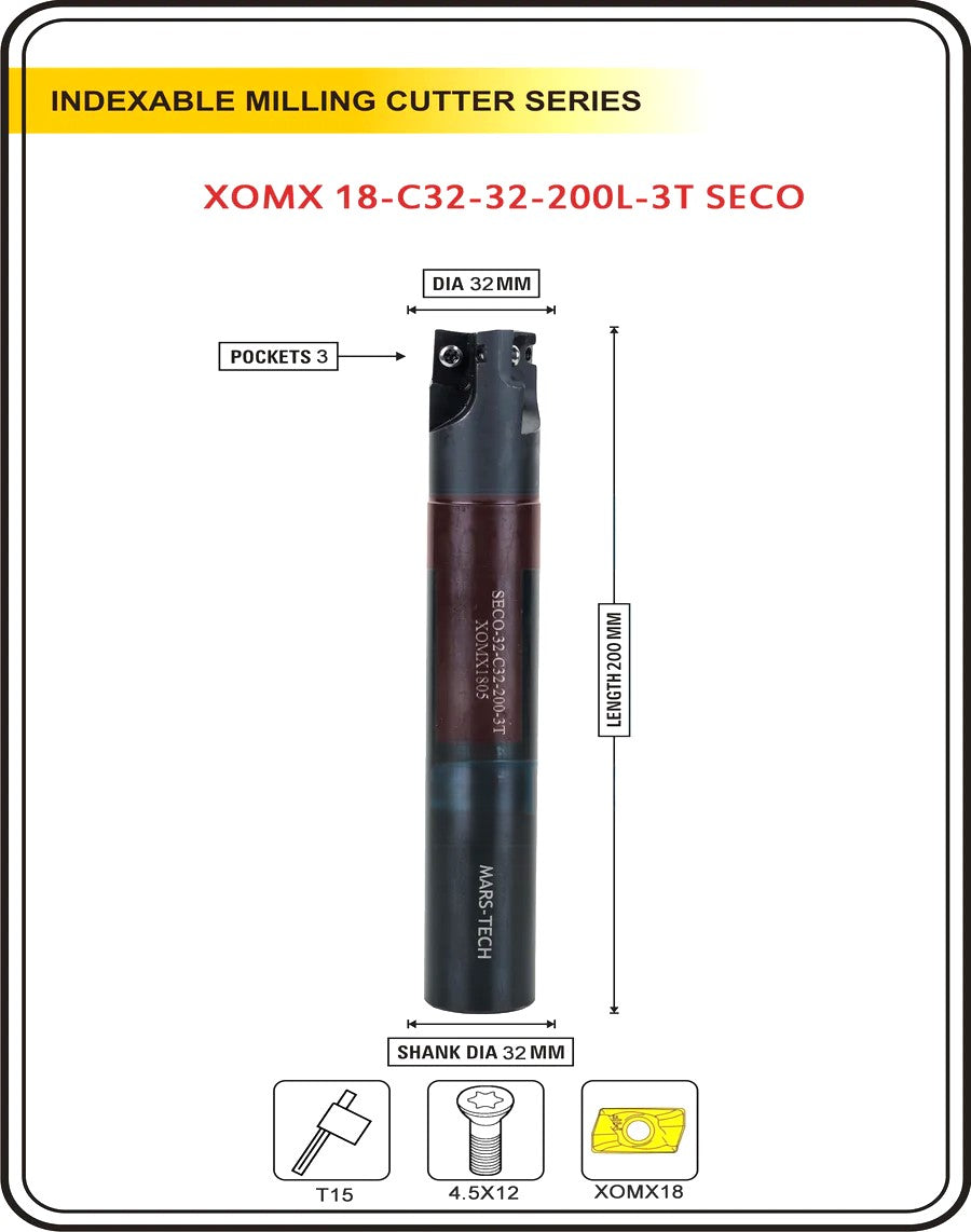 This is a precision-engineered Shoulder and Face Milling Cutter used in both CNC and Manual Milling Machines. Compatible with ISO XOMX1804 carbide inserts, it ensures cost-effective and efficient machining compared to traditional HSS tools. The cutter body is hardened to 45–50 HRC, offering excellent wear resistance and long tool life.