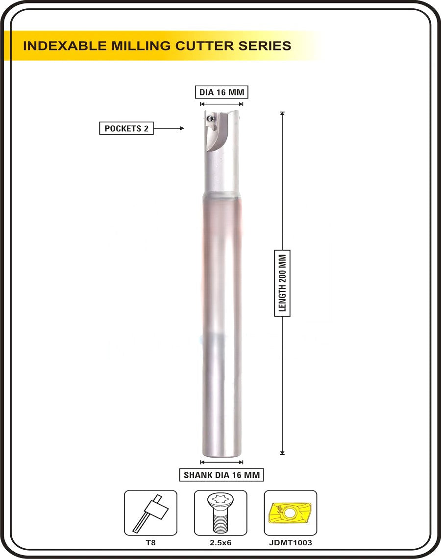 This is a precision-engineered Shoulder and Face Milling Cutter used in both CNC and Manual Milling Machines. Compatible with ISO JDMT1003 carbide inserts, it ensures cost-effective and efficient machining compared to traditional HSS tools. The cutter body is hardened to 45–50 HRC, offering excellent wear resistance and long tool life.