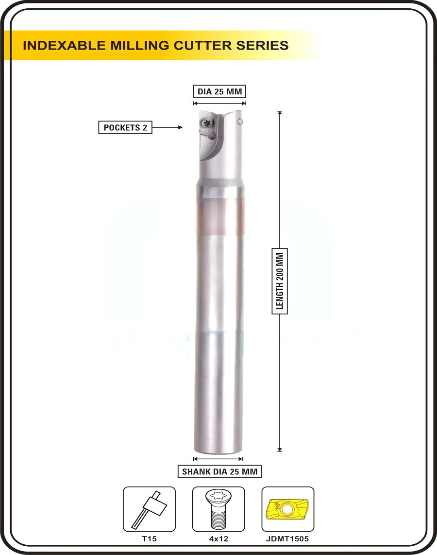 This is a precision-engineered Shoulder and Face Milling Cutter used in both CNC and Manual Milling Machines. Compatible with ISO JDMT1505 carbide inserts, it ensures cost-effective and efficient machining compared to traditional HSS tools. The cutter body is hardened to 45โ50 HRC, offering excellent wear resistance and long tool life.