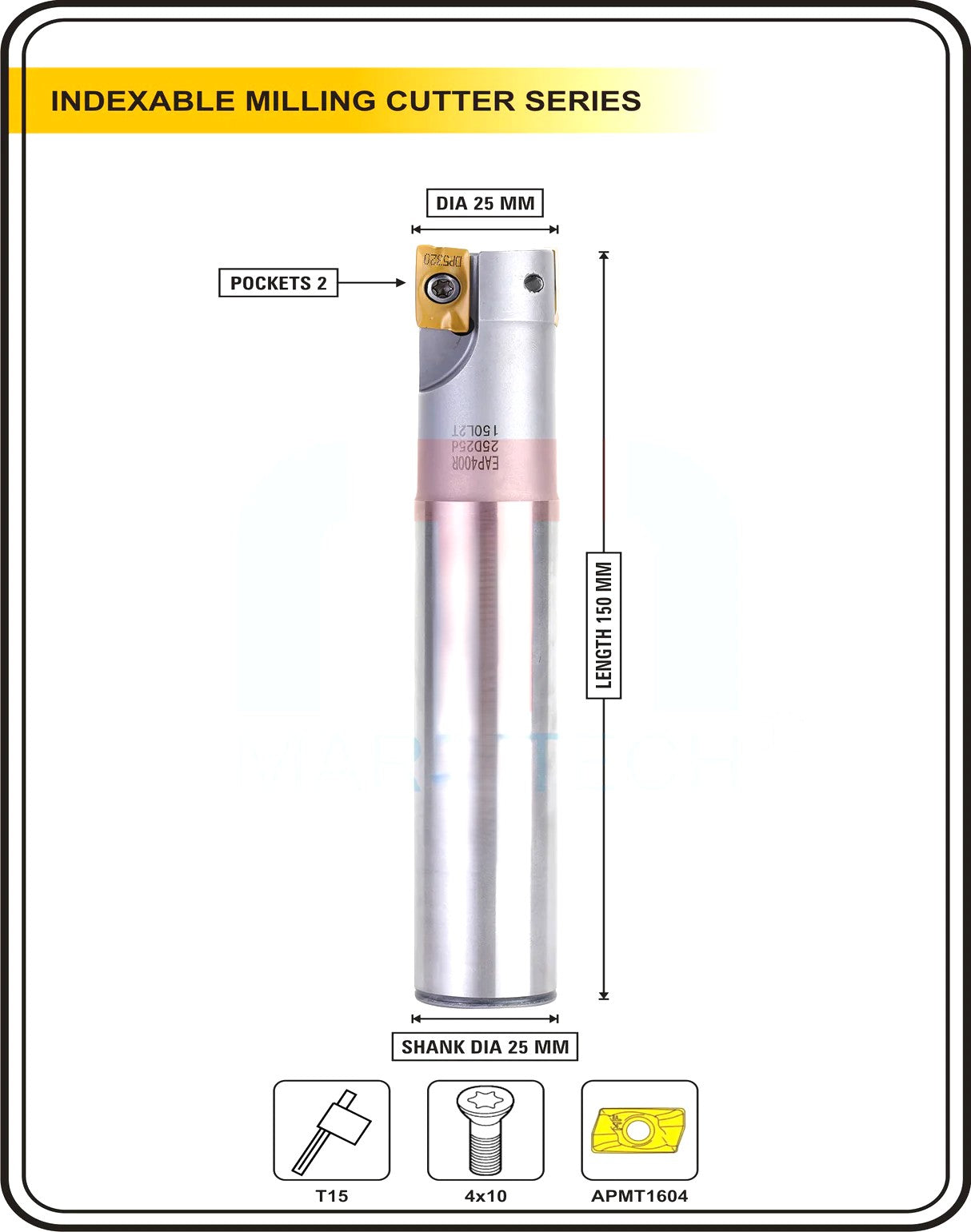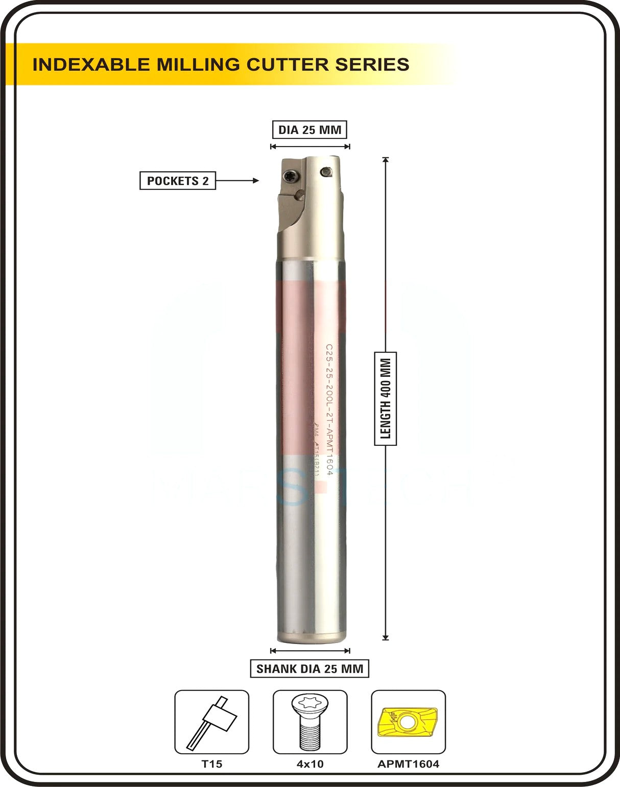This is a precision-engineered Shoulder and Face Milling Cutter used in both CNC and Manual Milling Machines. Compatible with ISO APMT1604 carbide inserts, it ensures cost-effective and efficient machining compared to traditional HSS tools. The cutter body is hardened to 45β50 HRC, offering excellent wear resistance and long tool life.