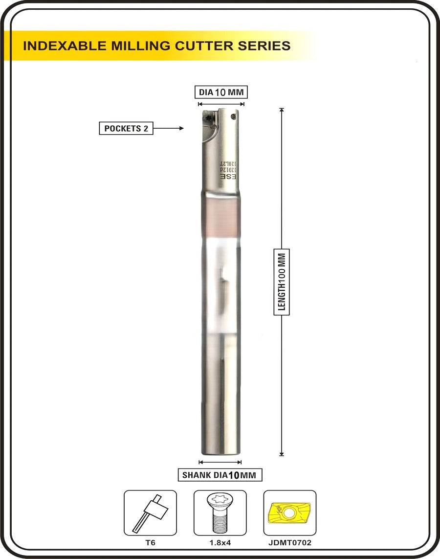 Indexable Insert Endmill 10 MM II 2 Pocket II 10 Pcs JDMT0702 Carbide Inserts Free