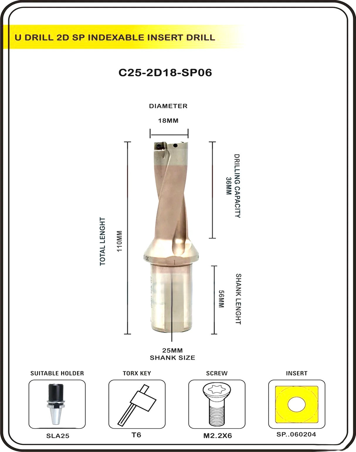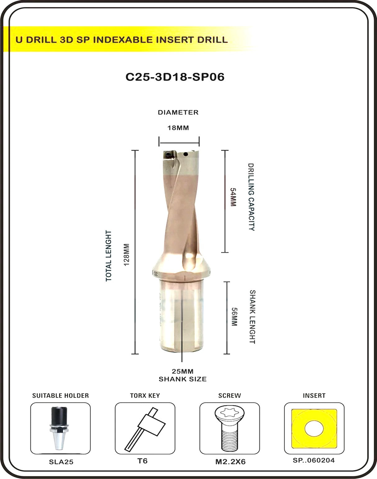 A U Drill (also called as Indexable Drill) is a type of drill used in CNC/VMC machines to drill large diameter holes quickly and efficiently